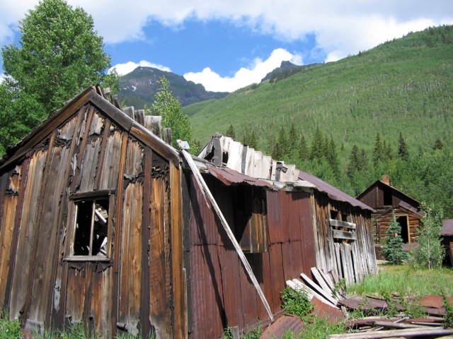Ironton’s location made it a natural shipping point for the area. Supplies for the mines arrived on pack trains, made up of sturdy little mules and burros. The little pack mules would find themselves lashed up to every kind of merchandise imaginable. Lumber, piping, sides of frozen beef, and even the odd coffin would arrive on the pack trains. The pack trains could travel the steep trails and deliver the supplies to the mines above. In return, the ore from the mines was loaded on the pack trains for shipment into town. Ironton was connected with Ouray to the north, by a toll road, that today we call the “Million Dollar Highway.”